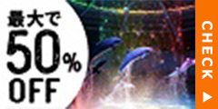 お得感を出すために、「最大50%OFF」という文字をインパクトを出すために、ダイナミックに配置したバナーデザインです。