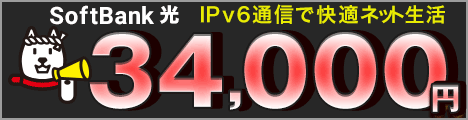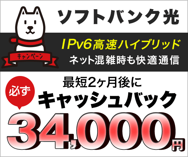 IPv6高速ハイブリッドでキャッシュバック34,000円【SoftBank光】のバナーデザイン 468x60320x50234x60125x125120x60100x100100x60 ALL 468x60320x50234x60125x125120x60100x100100x60 All 別サイズ