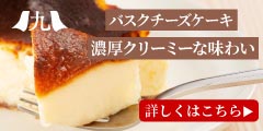 バスクチーズケーキ濃厚クリーミーな味わいのバナーデザインです。