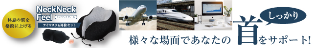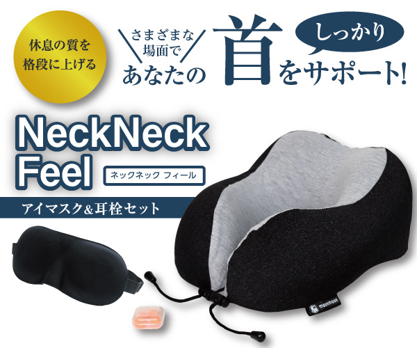 休息の質を格段に上げるネックピロー+アイマスク&耳栓セット【NeckNeck Feel】のバナーデザイン 468x60320x50234x60120x60100x60 ALL 468x60320x50234x60120x60100x60 All 別サイズ