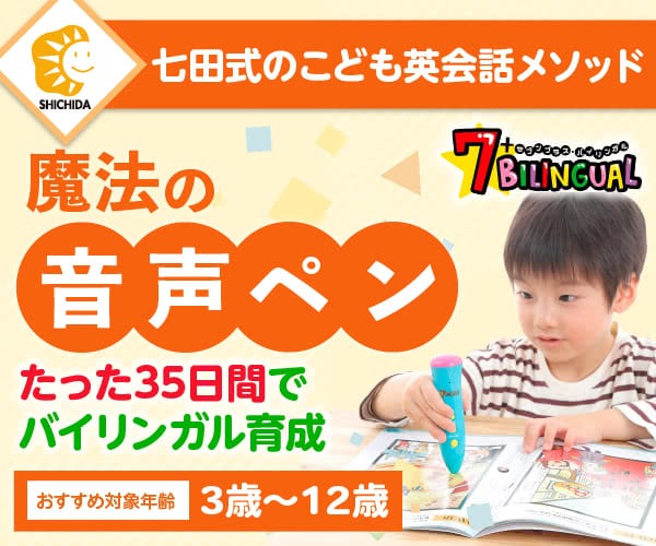 しちだの魔法ペンならたった35日でバイリンガル!世界の七田式英語教材 7+BILING UAL 音声ペンのバナーデザイン 468x60120x60234x60320x50100x60 ALL 468x60120x60234x60320x50100x60 All 別サイズ