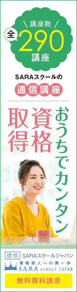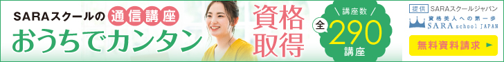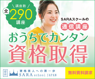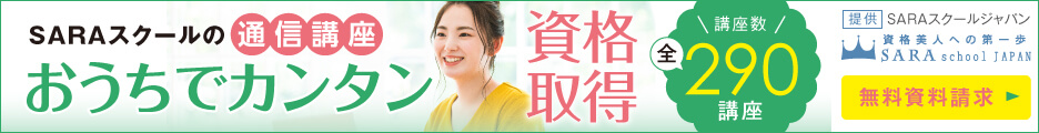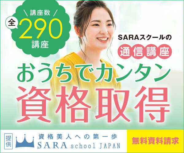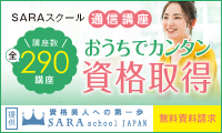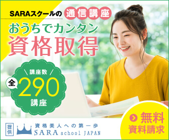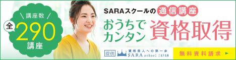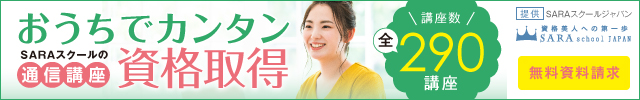 資格を家で簡単に取得できる女性のための通信講座【SARAスクール】のバナーデザイン
