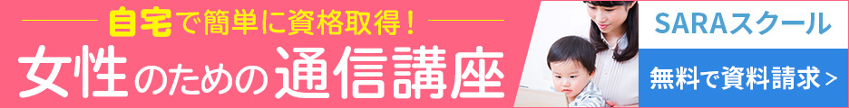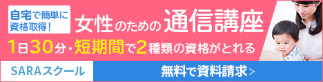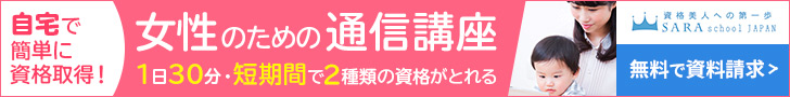 1日30分・短期間で資格取得できる女性のための通信講座【SARAスクール】のバナーデザイン 728x90120x60100x60234x60320x50336x280250x250160x600125x125100x100468x60 ALL 728x90120x60100x60234x60320x50336x280250x250160x600125x125100x100468x60 All 別サイズ