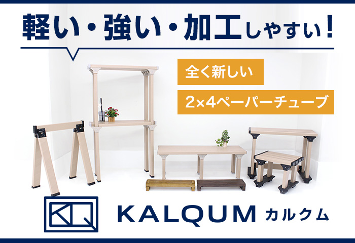 軽量!強い!加工しやすい!全く新しい2×4材ペーパーチューブ【KALQUM(カルクム )】のバナーデザイン 120x60468x60728x90350x160234x60250x250350x240 ALL 120x60468x60728x90350x160234x60250x250350x240 All 別サイズ