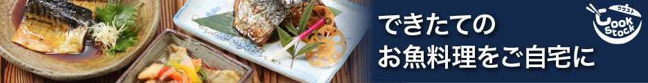 冷凍とは思えないほどおいしい魚惣菜をお届け!【CookStock】のバナーデザインです。