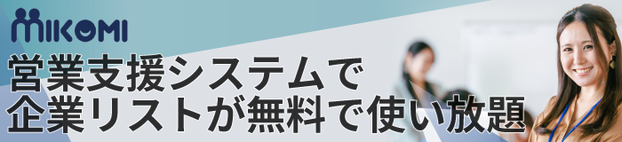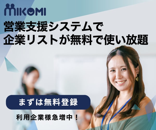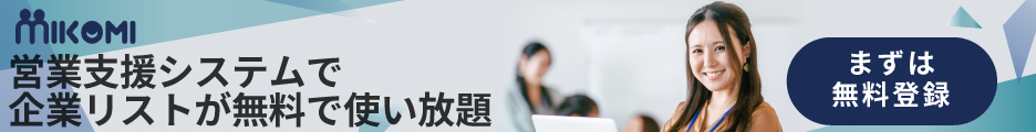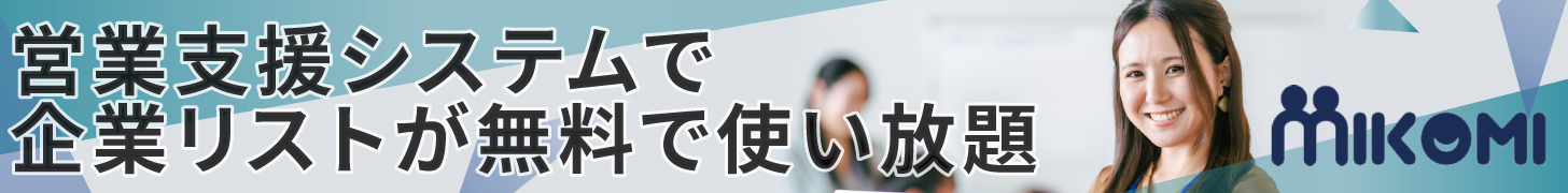 営業支援システムで企業リストが無料で使い放題【Mikomi】のバナーデザイン 728x90350x80468x60100x60320x50 ALL 728x90350x80468x60100x60320x50 All 別サイズ