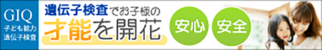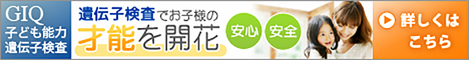 安心の国内検査でお子様の才能を開花【GIQ子ども能力遺伝子検査】のバナーデザイン