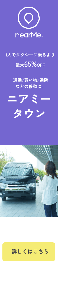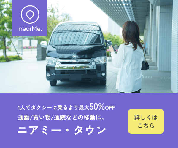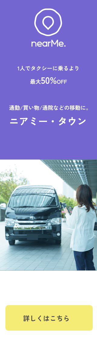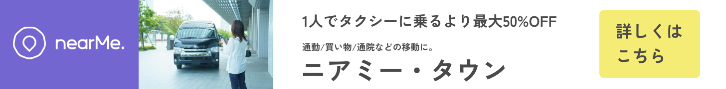 【nearMe.Town】通勤/買い物/通院の移動をもっと快適・おトクに!のバナーデザイン 120x60100x100234x60120x90320x50224x33728x90160x600120x600 ALL 120x60100x100234x60120x90320x50224x33728x90160x600120x600 All 別サイズ