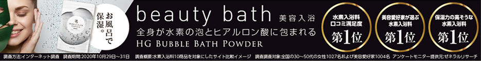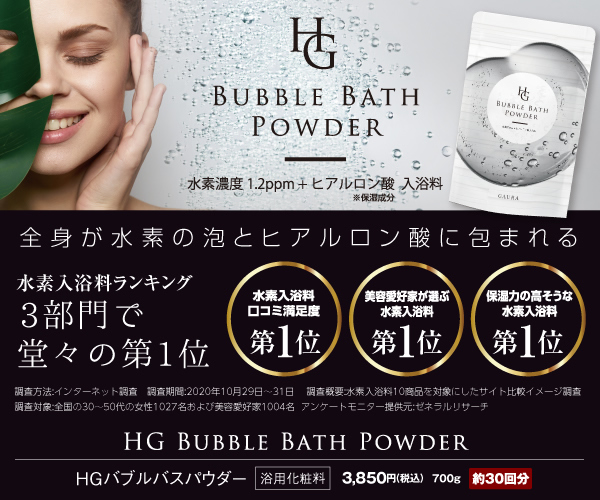 水素入浴剤3部門で堂々の第1位【HGバブルバスパウダー】のバナーデザインです。