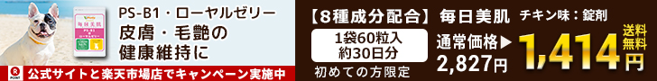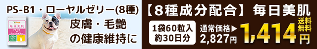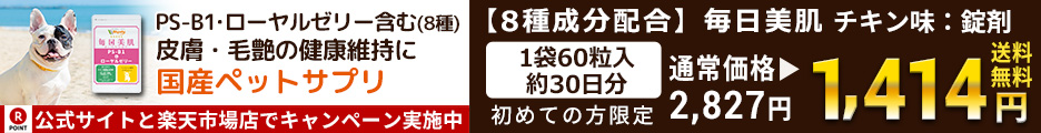 【犬用サプリメント】皮膚・毛艶の健康維持に「毎日美肌 PS-B1&ローヤルゼリー」のバナーデザイン 250x250180x150234x60320x50468x60728x90 ALL 250x250180x150234x60320x50468x60728x90 All 別サイズ