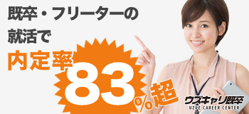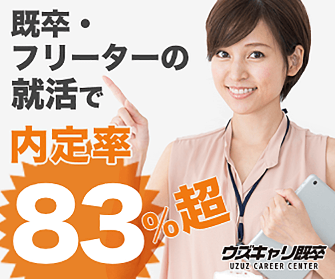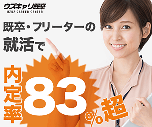 既卒・フリーターの就活で内定率83%以上!【ウズキャリ既卒】のバナーデザインです。