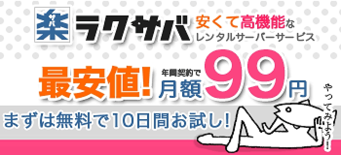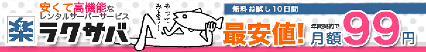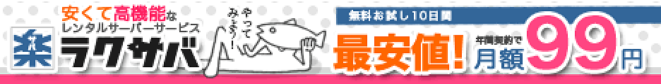 無料で10日間お試し!年間契約で月額99円【ラクサバ】のバナーデザイン 100x100468x60728x90100x60120x600234x60320x50350x160 ALL 100x100468x60728x90100x60120x600234x60320x50350x160 All 別サイズ