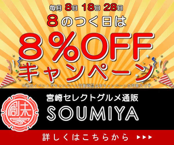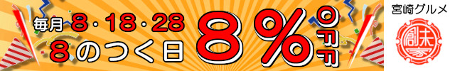 毎月8・18・28日!8のつく日は8%OFF【宮崎セレクトグルメ|創未家】のバナーデザイン 100x60120x60234x60320x50468x60 ALL 100x60120x60234x60320x50468x60 All 別サイズ