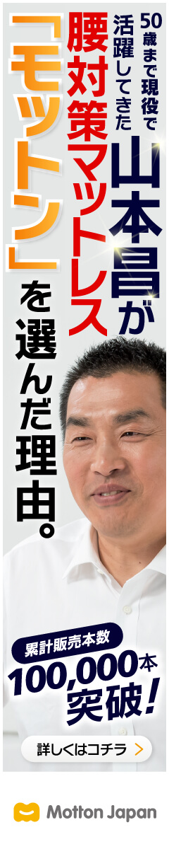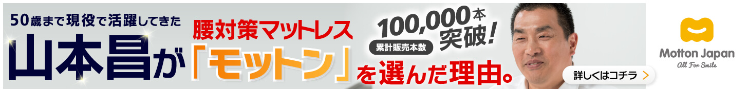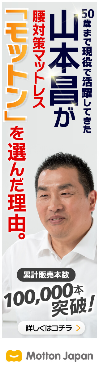山本昌が腰対策マットレス「モットン」を選んだ理由。モットンジャパンのバナーデザイン 728x90350x160160x600125x125120x90120x600120x240 ALL 728x90350x160160x600125x125120x90120x600120x240 All 別サイズ