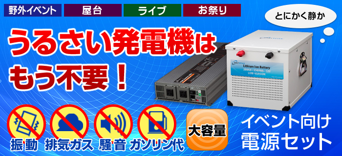 うるさい発電機はもう不要!とにかく静かなイベント向け電源セットのバナーデザイン