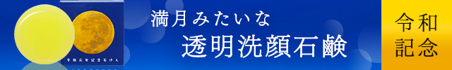 スキンケア&石けんのパイオニア【ちのしお屋】満月みたいな透明石鹸のバナーデザインです。