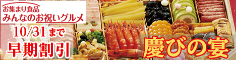 <人気ホテル・料亭監修>10月31日まで早期割引実施中!「慶びの宴」のバナーデザイン 234x60100x60120x60468x60320x50728x90 ALL 234x60100x60120x60468x60320x50728x90 All 別サイズ