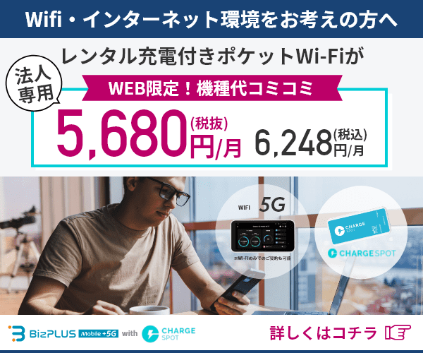 法人専用モバイルバッテリーサービス付きポケットWi-Fi【BizPlus mobile +5G with Chargespot】のバナーデザイン 468x60320x50234x60120x60 ALL 468x60320x50234x60120x60 All 別サイズ