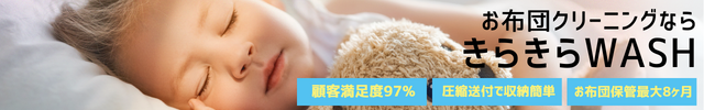 実績200万枚以上で安心!保管や圧縮も可能なお布団クリーニングなら【きらきらWASH】のバナーデザイン 468x60320x50234x60120x60100x60 ALL 468x60320x50234x60120x60100x60 All 別サイズ