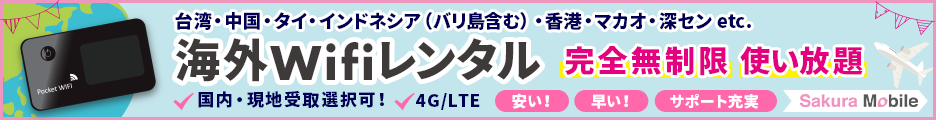 安い!簡単!便利!無制限で使える海外Wifi【SakuraMobile海外Wifi】のバナーデザイン 468x120468x60320x50234x60120x60100x60 ALL 468x120468x60320x50234x60120x60100x60 All 別サイズ
