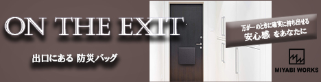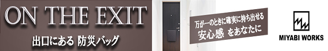 ON THE EXIT 出口にある防災バッグのバナーデザイン 468x60320x50234x60125x125100x100 ALL 468x60320x50234x60125x125100x100 All 別サイズ