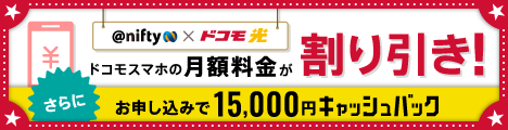 プロバイダーの老舗、ニフティ株式会社の【@nifty with ドコモ光】のバナーデザイン 468x60320x50250x250234x60120x60100x60100x100 ALL 468x60320x50250x250234x60120x60100x60100x100 All 別サイズ