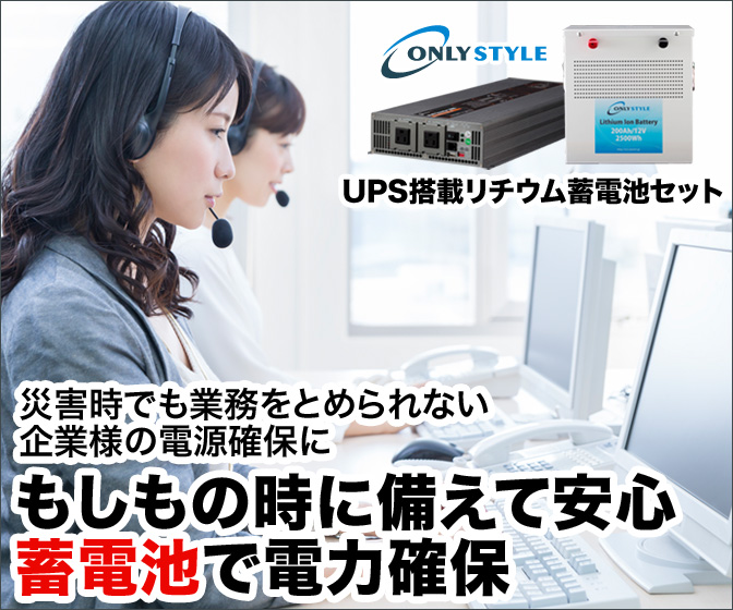 災害時でも業務を止められない企業様の電源確保に【オンリースタイルUPS搭載リチウム蓄電池セット】のバナーデザイン 728x90350x160350x240350x240350x160336x280336x280300x250250x250250x250 ALL 728x90350x160350x240350x240350x160336x280336x280300x250250x250250x250 All 別サイズ